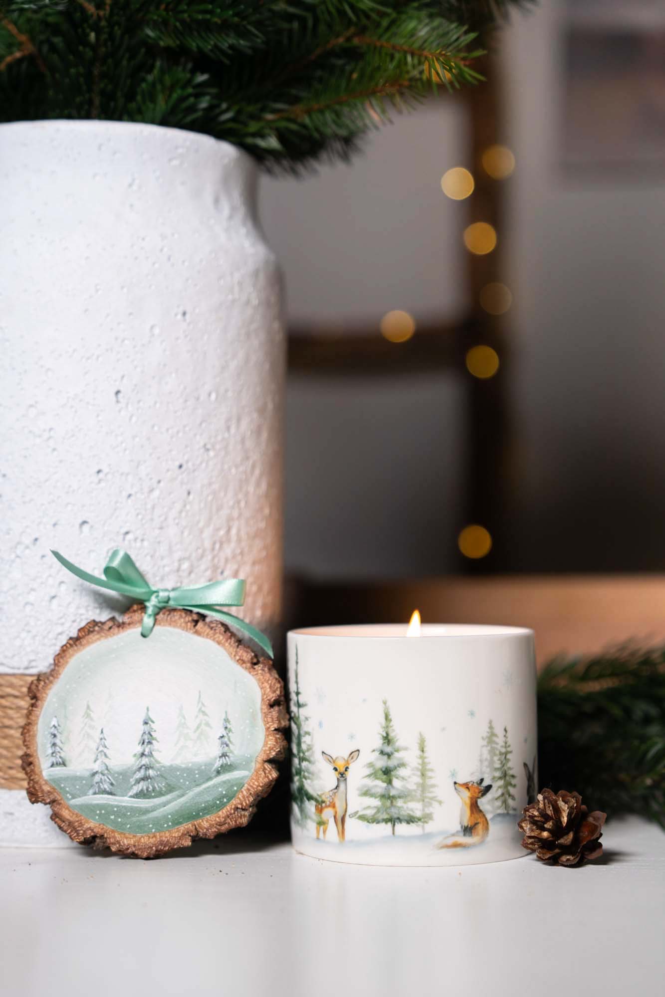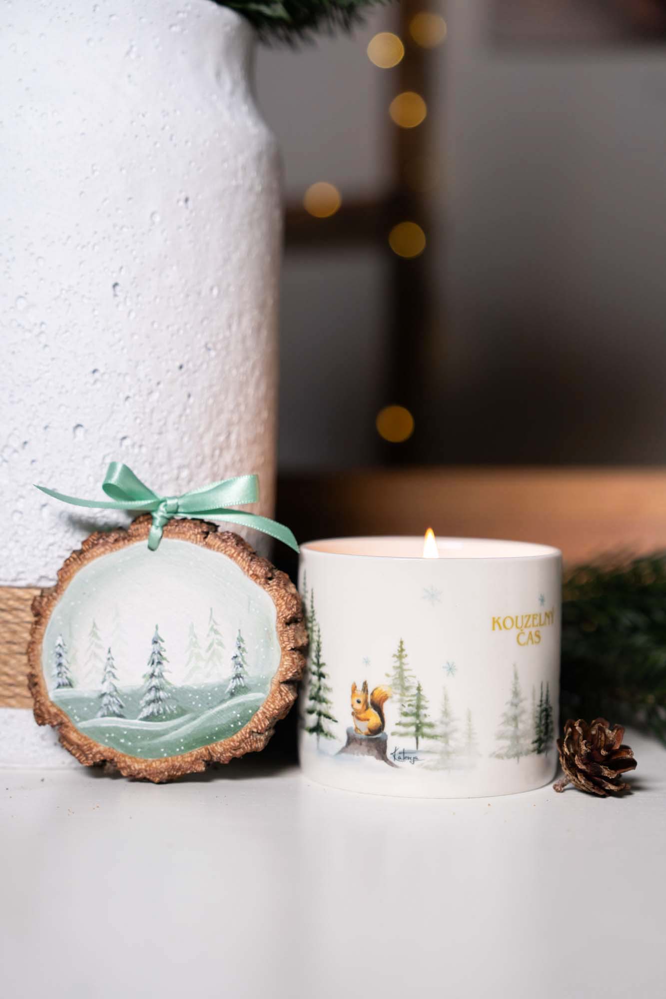 Dárkový set – Kouzelný čas zimního lesa – svíčka a ozdoba