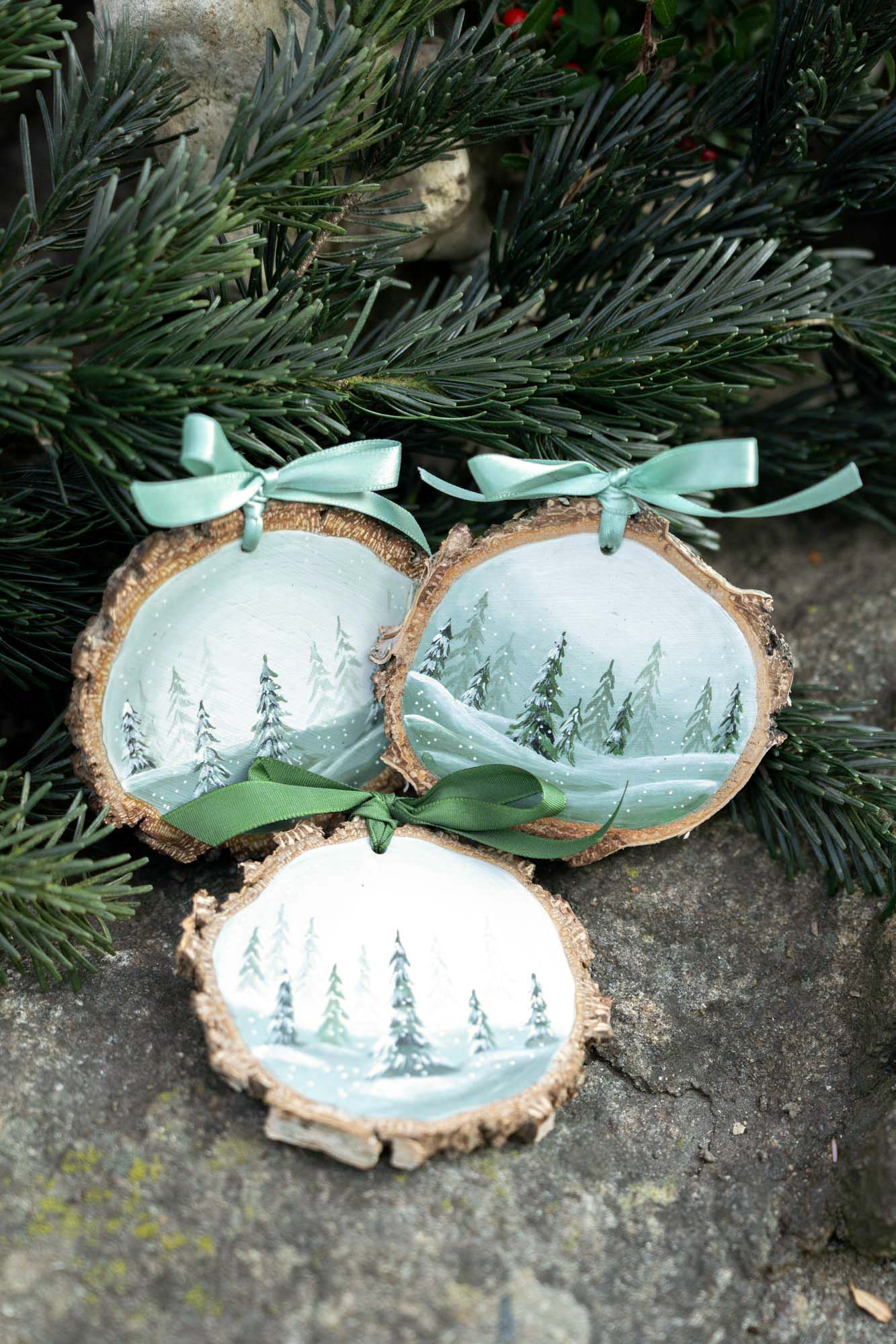 Dřevěné malované ozdoby – zimní kouzlo lesa přinesou do vašeho domova kousek přírody i vůni lesa.