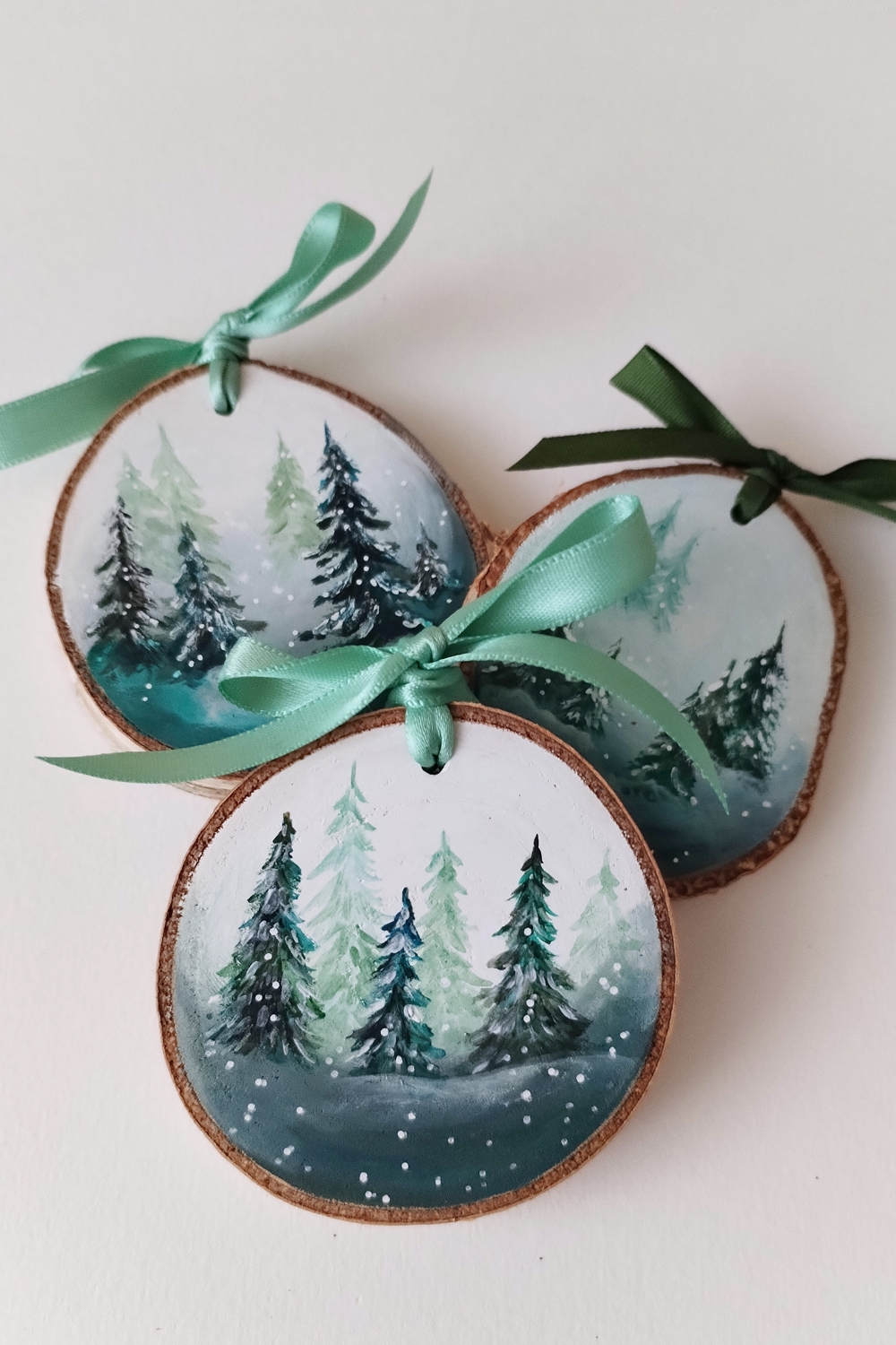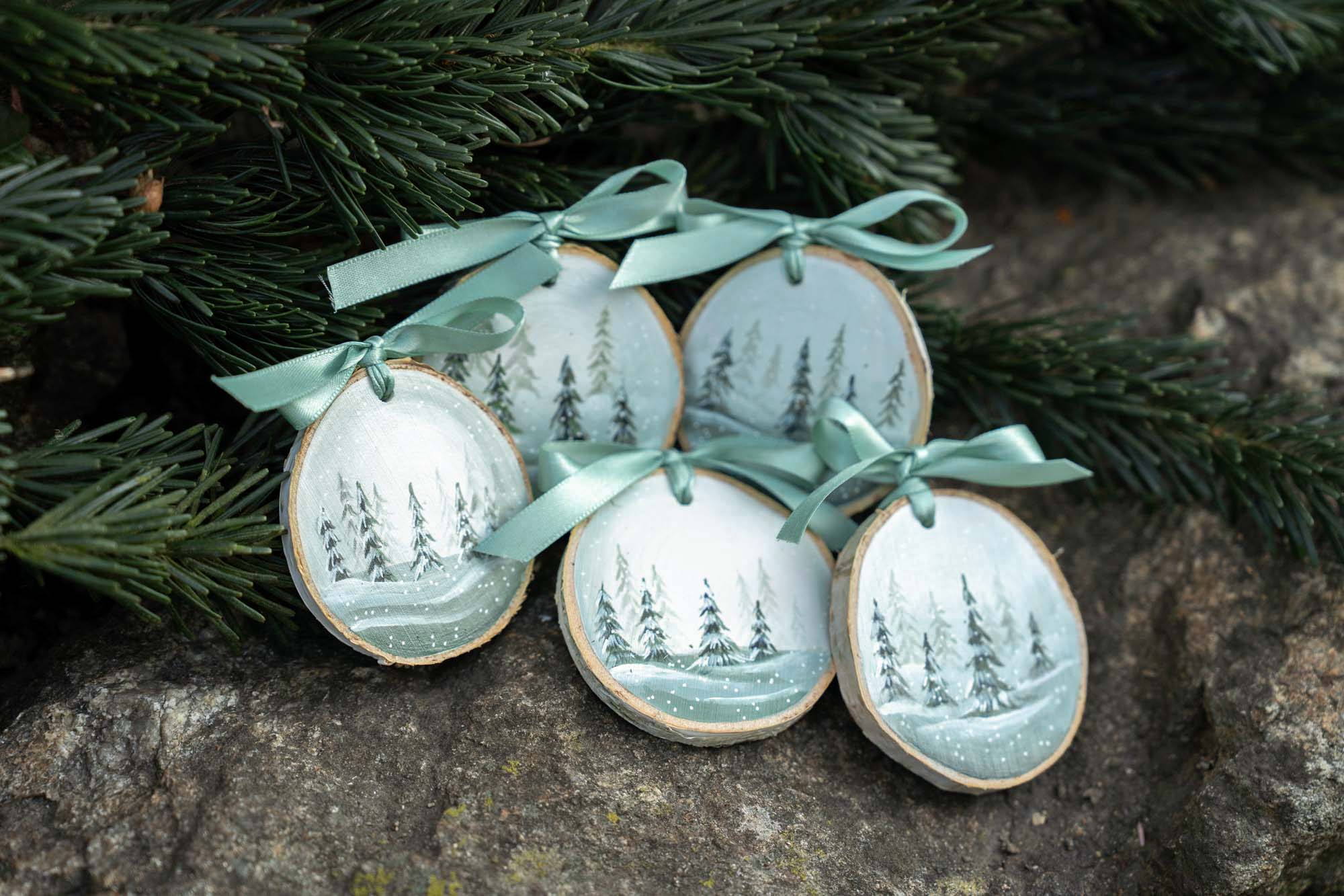 Dřevěné malované ozdoby – zimní kouzlo lesa přinesou do vašeho domova kousek přírody i vůni lesa.