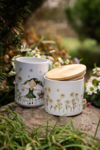 Tento hrnek s autorskou malbou plnou heřmánků si oblíbí každý milovník jemné přírody, kouzelných příběhů a rozkvetlých letních luk. Bude vám dělat společnost na terase, na chaloupce i doma v těch tichých chvílích, kdy si chcete dopřát klid jen pro sebe. Jeho větší objem přímo vybízí k tomu zpomalit a opravdu si ten moment vychutnat.