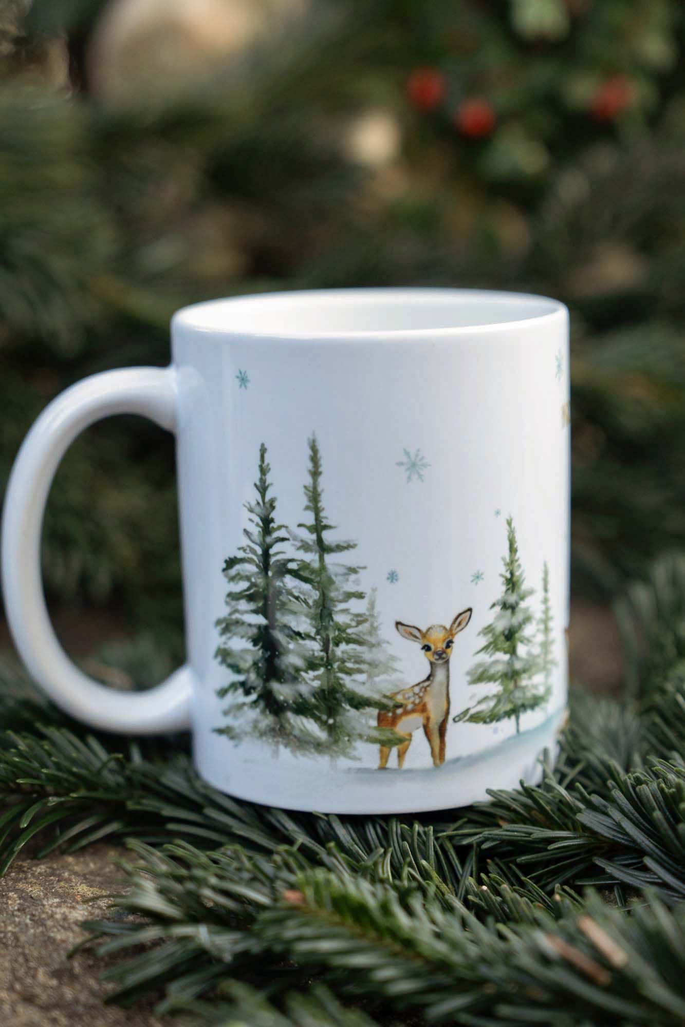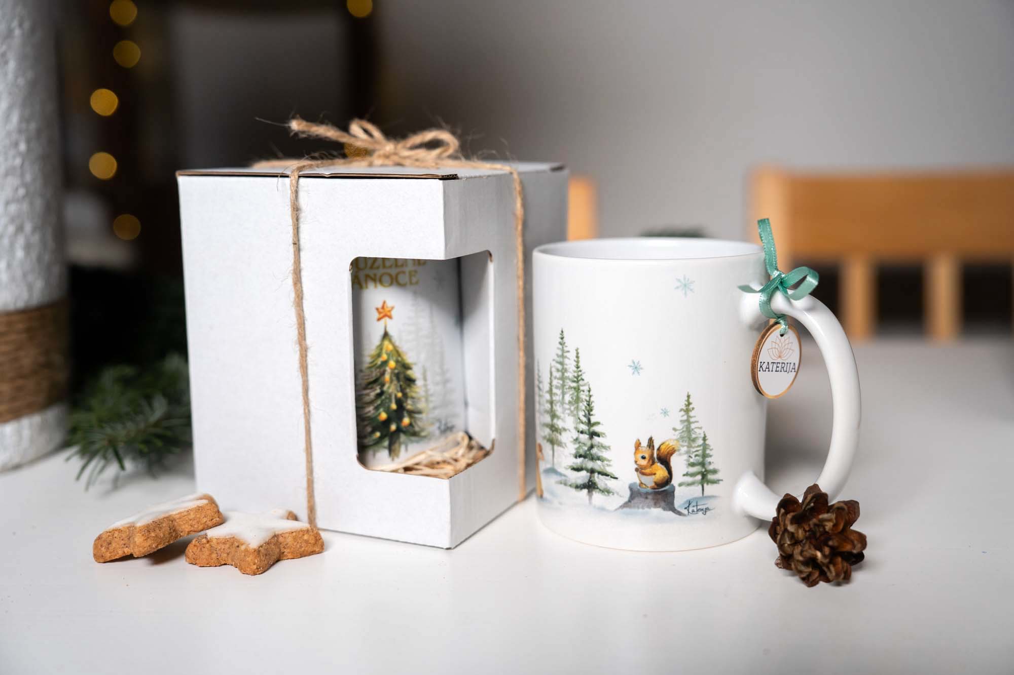Skladem – výroba obratemKeramický hrnek 330 ml s vánočním motivem. Kouzlo zimního lesa – autorská malba plná ticha, něhy a zimní magie. Vánoční dárek tvořený srdcem.