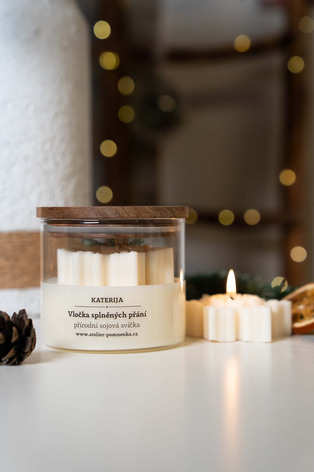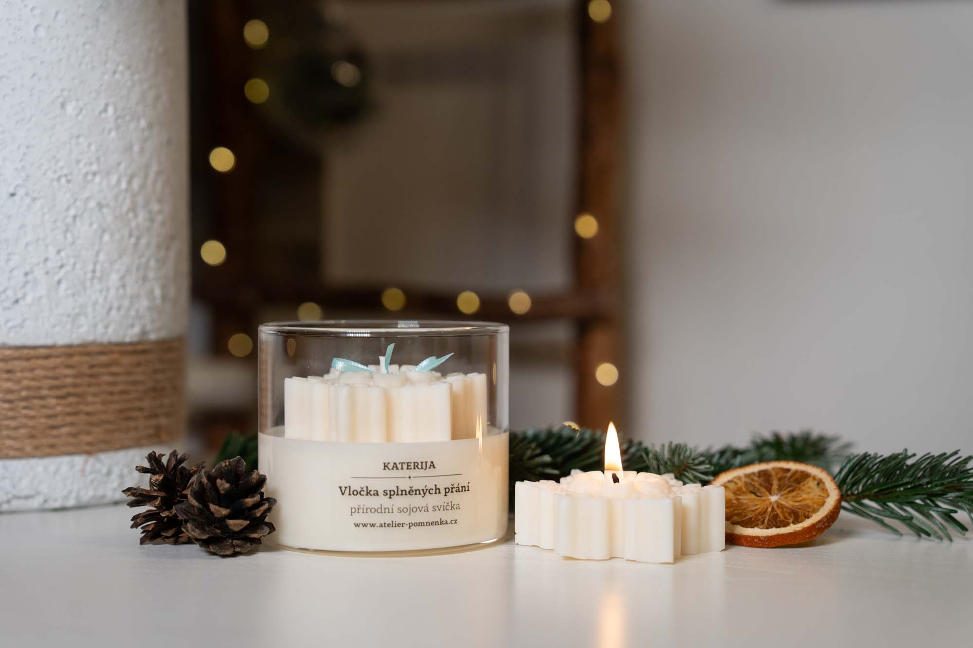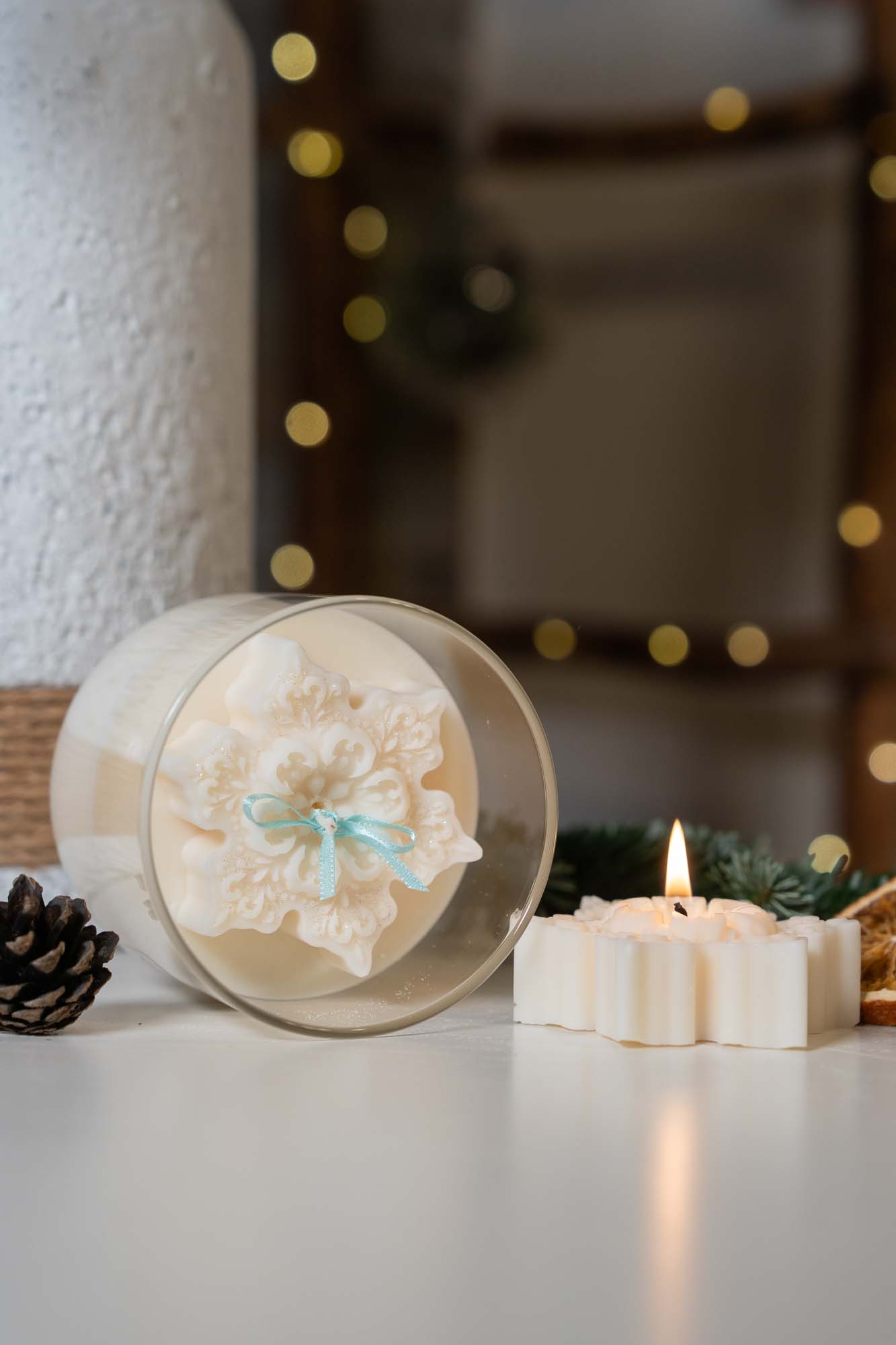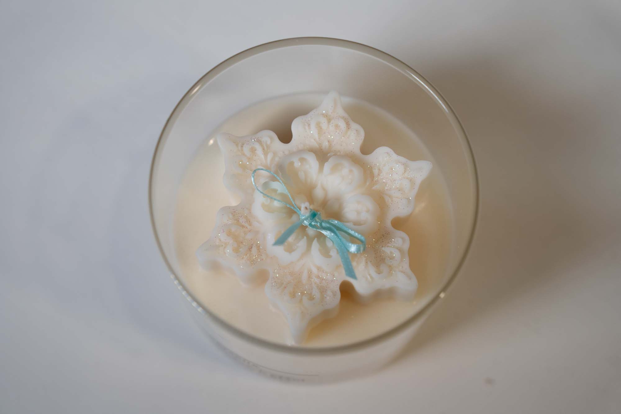 Vločka splněných přání, pro chvíle plné kouzel. Celá svíčka je vyráběná ručně s péčí a důrazem na detail. Protože kouzelné okamžiky přichází.