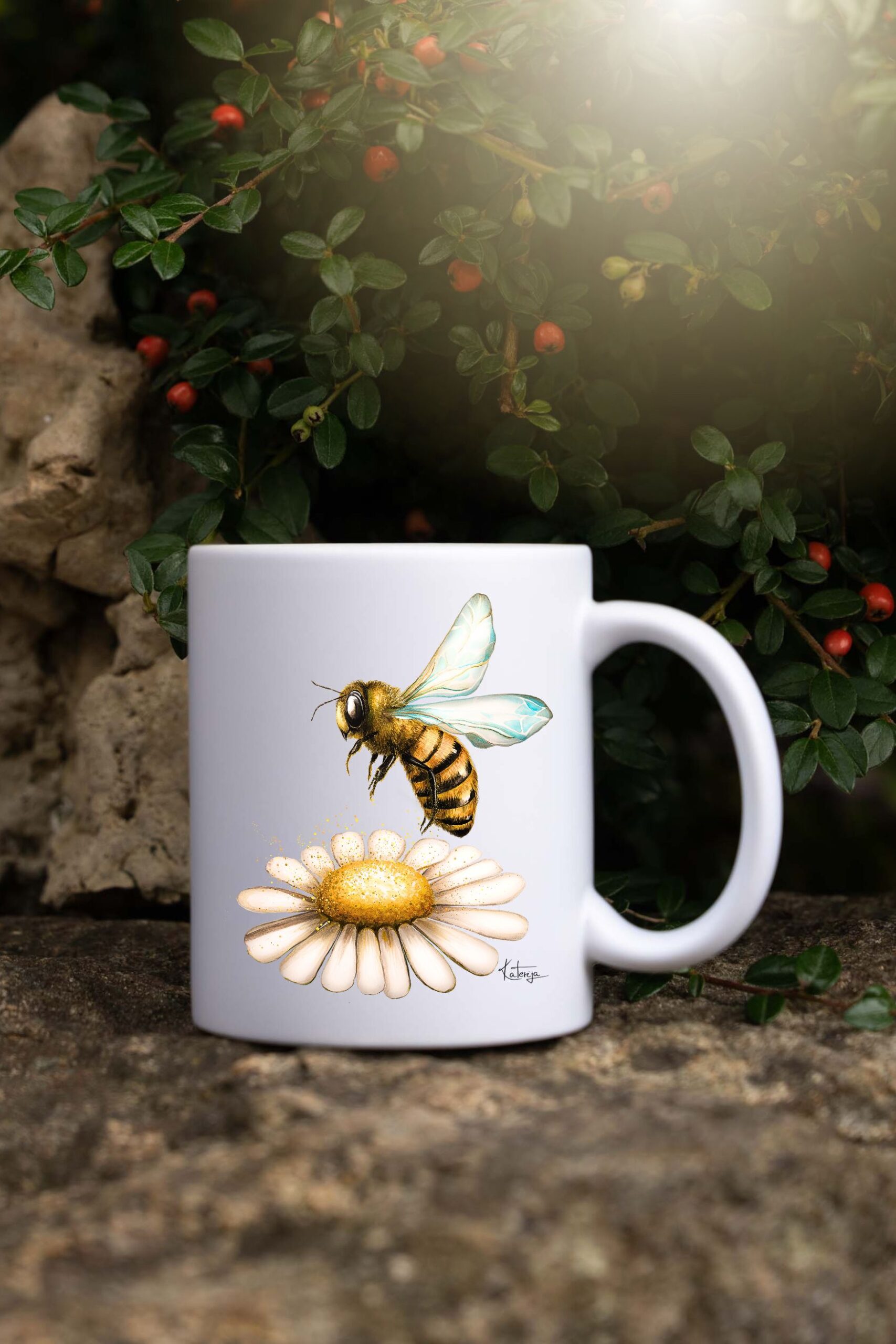 Skladem – výroba obratemSametový keramický hrnek 330ml. Včela na této autorské malbě je poslem světla a života. Jemná a křehká, přesto silná a neúnavná, nese s sebou příběh o spolupráci, rovnováze a radosti z maličkostí. Jejím třepotem křídel se do prostoru rozlévá klidná energie přírody i připomínka, že krása spočívá v jednoduchosti a odvaze tvořit.