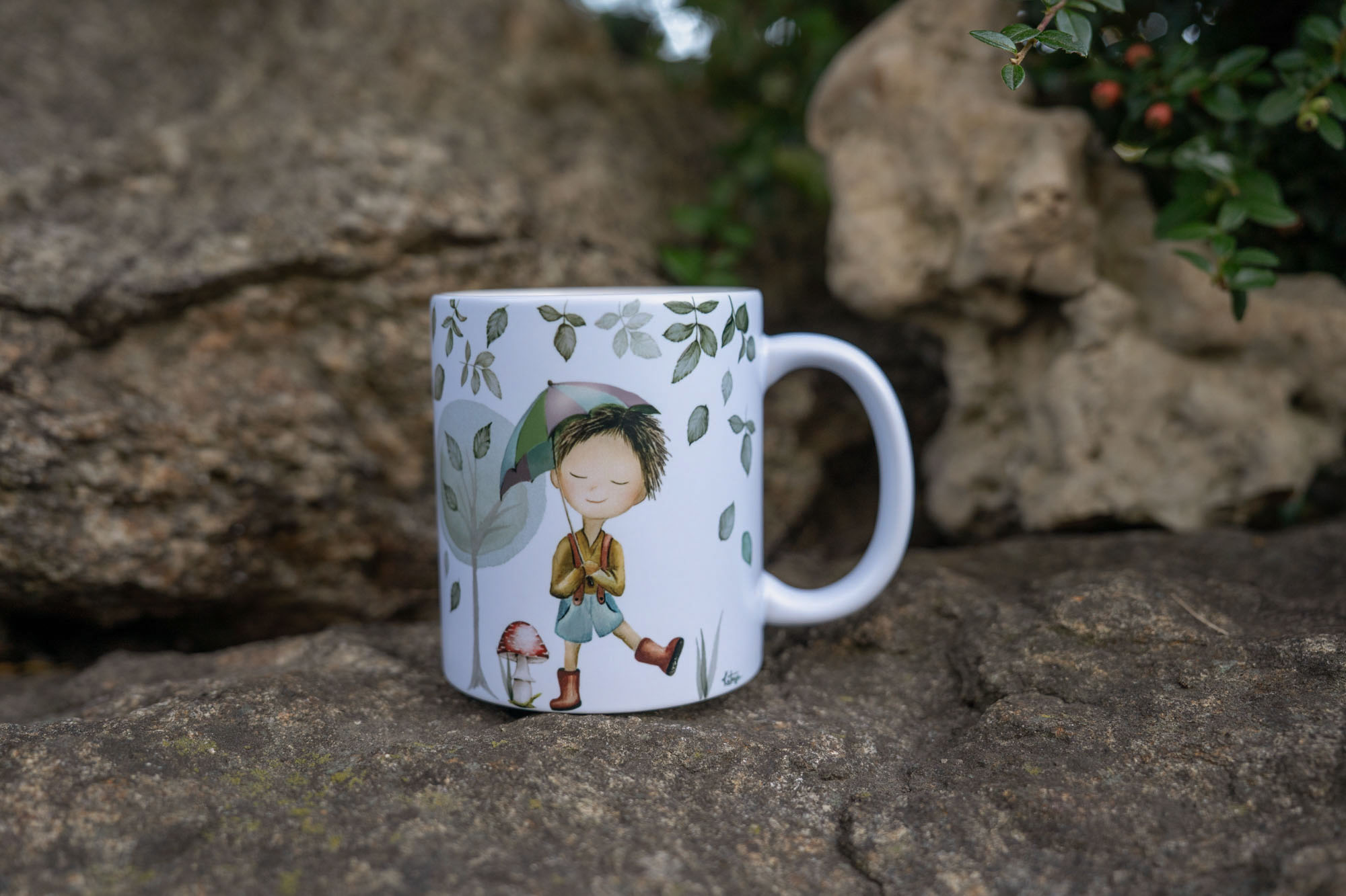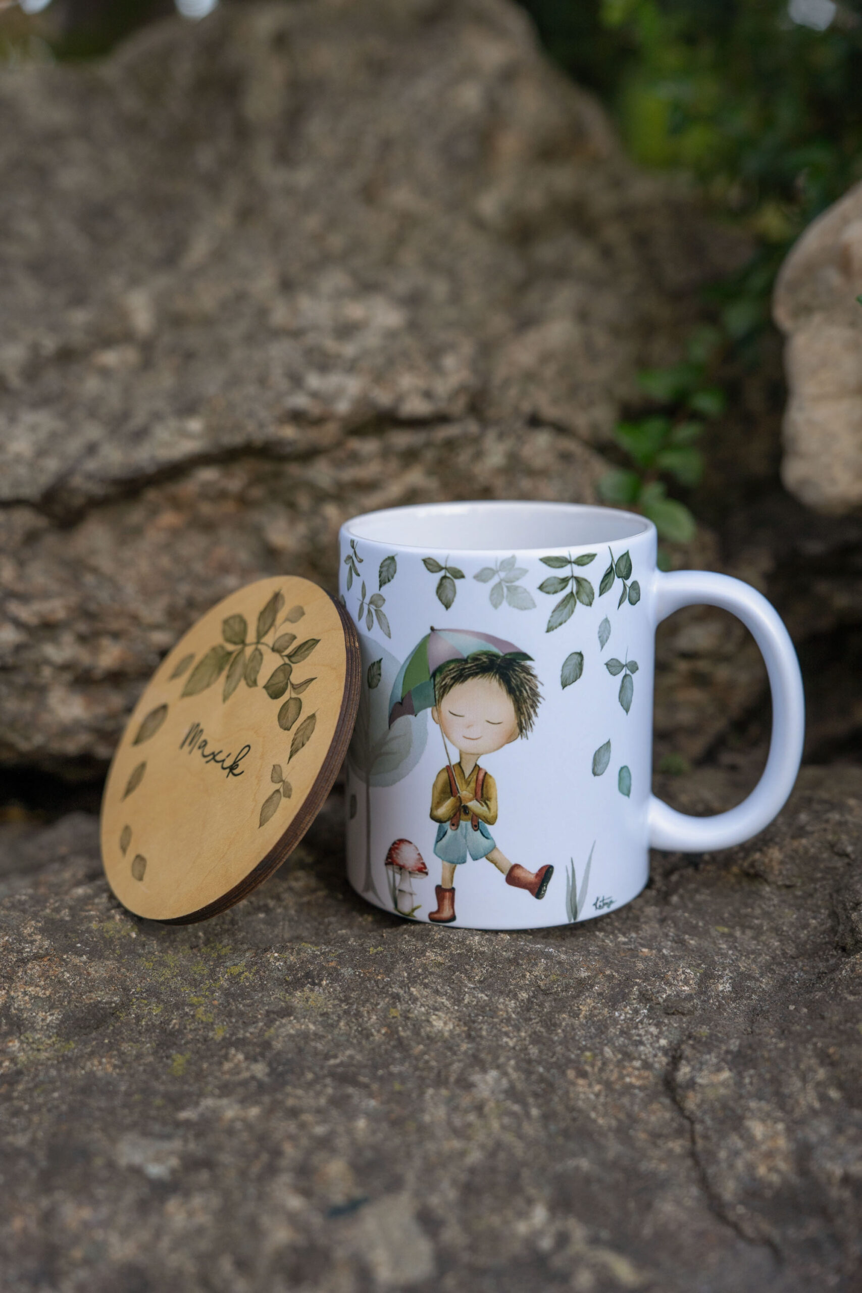 Kolekce Lístečkovo spojuje jemnost akvarelu s láskou k přírodě. Každý motiv vzniká jako autorská malba — ručně malované lístečky a hravé postavičky, které společně vytvářejí jemný příběh. Návrhy jsou digitálně zpracovány a pečlivě potištěny na výrobky.