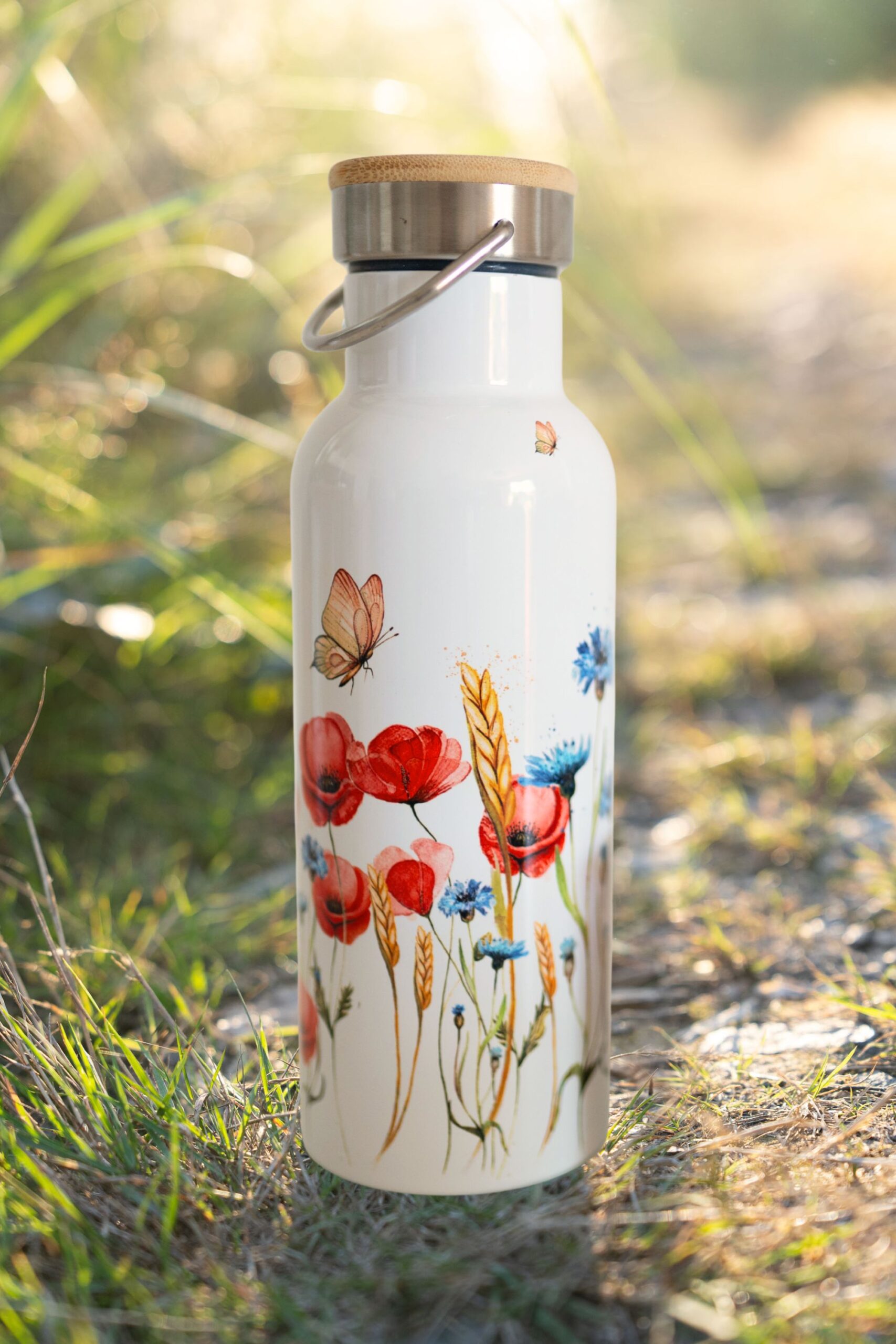 Skladem – výroba obratemTermolahev o objemu 750ml s malbou vlčích máků.