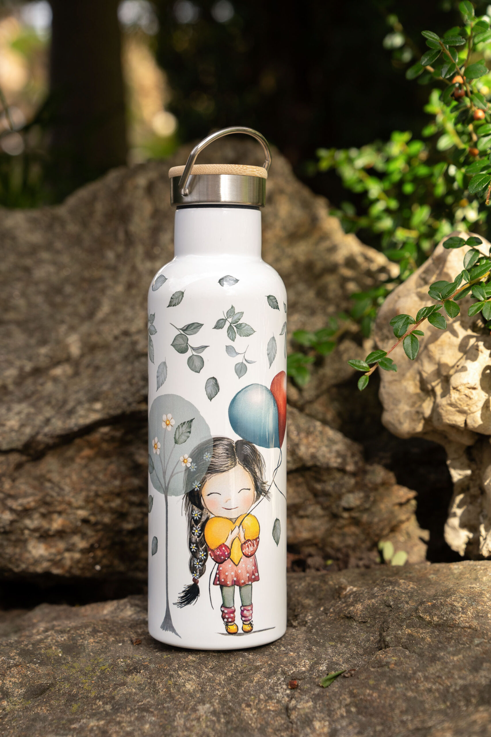 Dvoustěnná láhev, která udrží nápoje studené i teplé, bambusový uzávěr, neteče- testuji sama už druhým rokem.