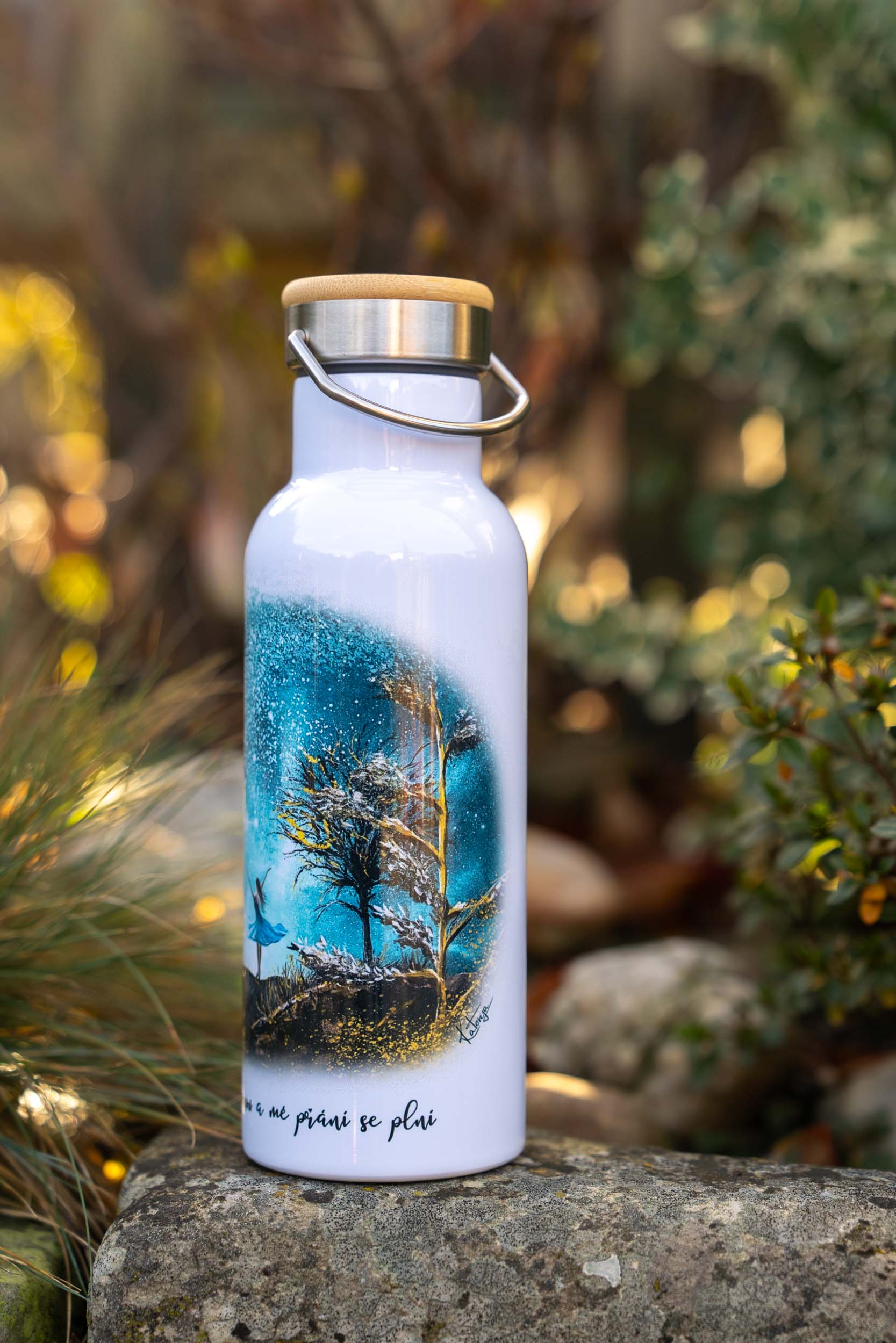Díky tomu se lahev stává více než jen obyčejným výrobkem – je spojencem na tvé cestě, připomínkou odvahy a důvěry v sebe sama. Samotná podstata malby vznikla ze skutečného příběhu. Tuto energii tedy nyní předávám dál, budeš ji mít také?